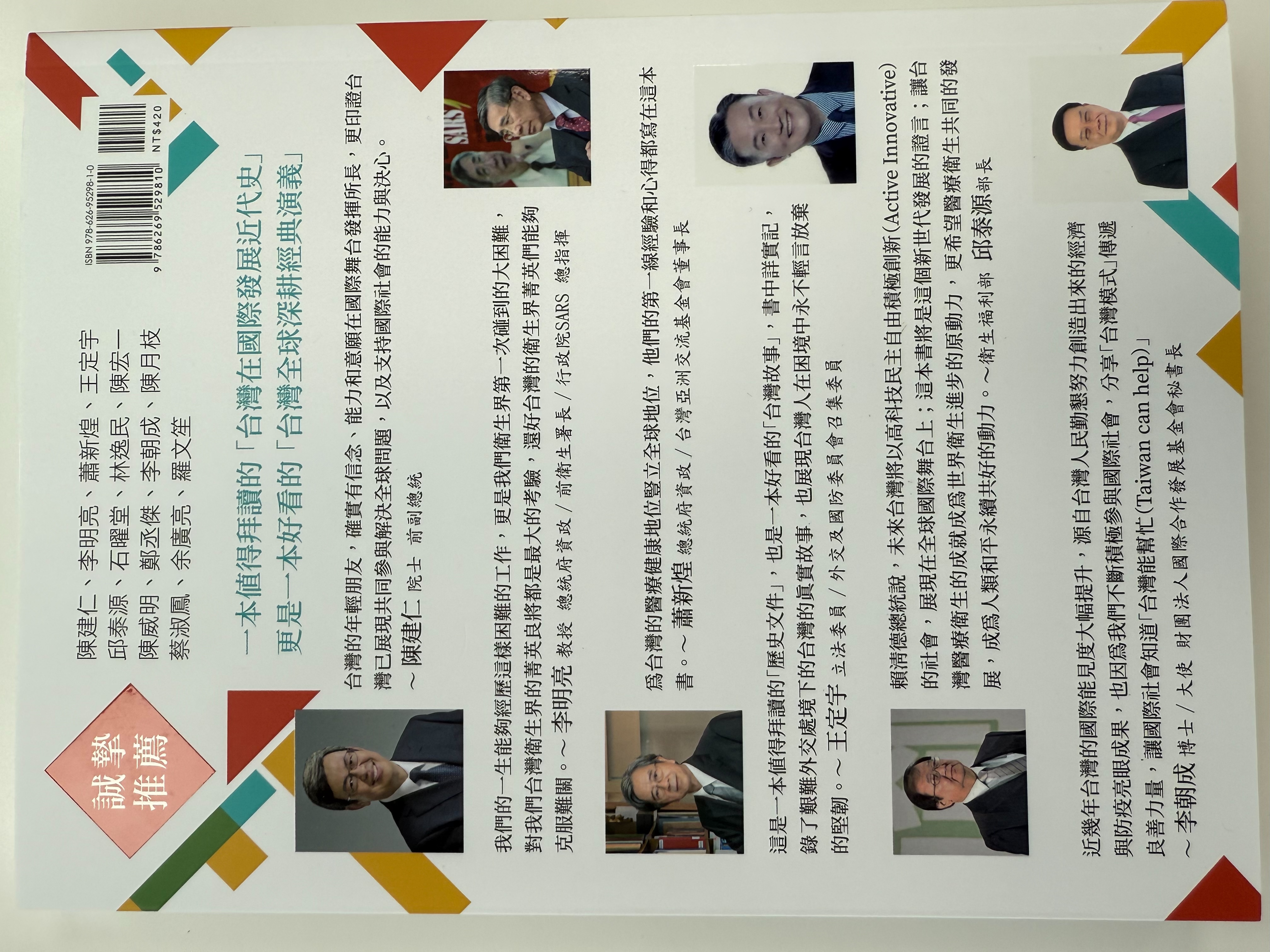 新書《大膽小兵闖天下:12則國際奮鬥的故事》2024年10月14日在台大校友會館舉行新書發表會 其中 王文甫學長 也是本書的作者之一,這本書結合了10位作者,記錄了12個台灣年輕人在海外創新與突破的感人故事 總統賴清德有致電祝賀,前副總統陳建仁親自到場致詞。 王學長是我們北藥之光! 底下是精采影片連結 https://drive.google.com/file/d/1lm1xJ3MVsUd9x0URCKXwGQqlE1YOiAZG/view?usp=share_link 新聞連結 https://www.cmmedia.com.tw/home/articles/49923